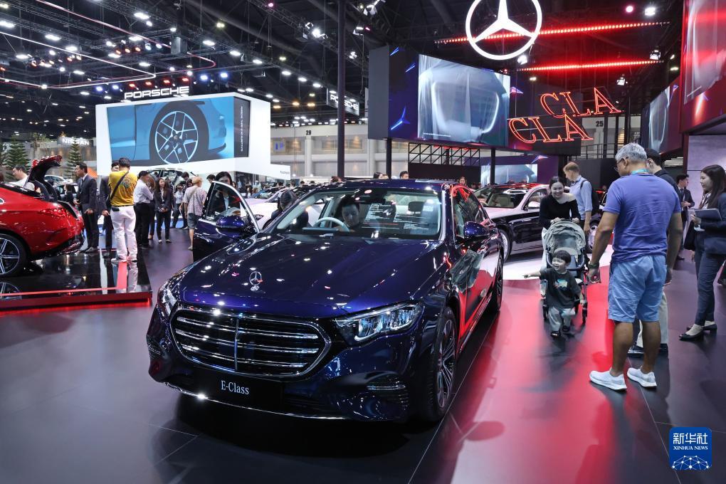 这是3月26日在泰国曼谷国际车展上拍摄的奔驰轿车。 第47届曼谷国际车展于3月25日至4月5日在泰国暖武里府举办。 新华社记者 孙玮彤 摄