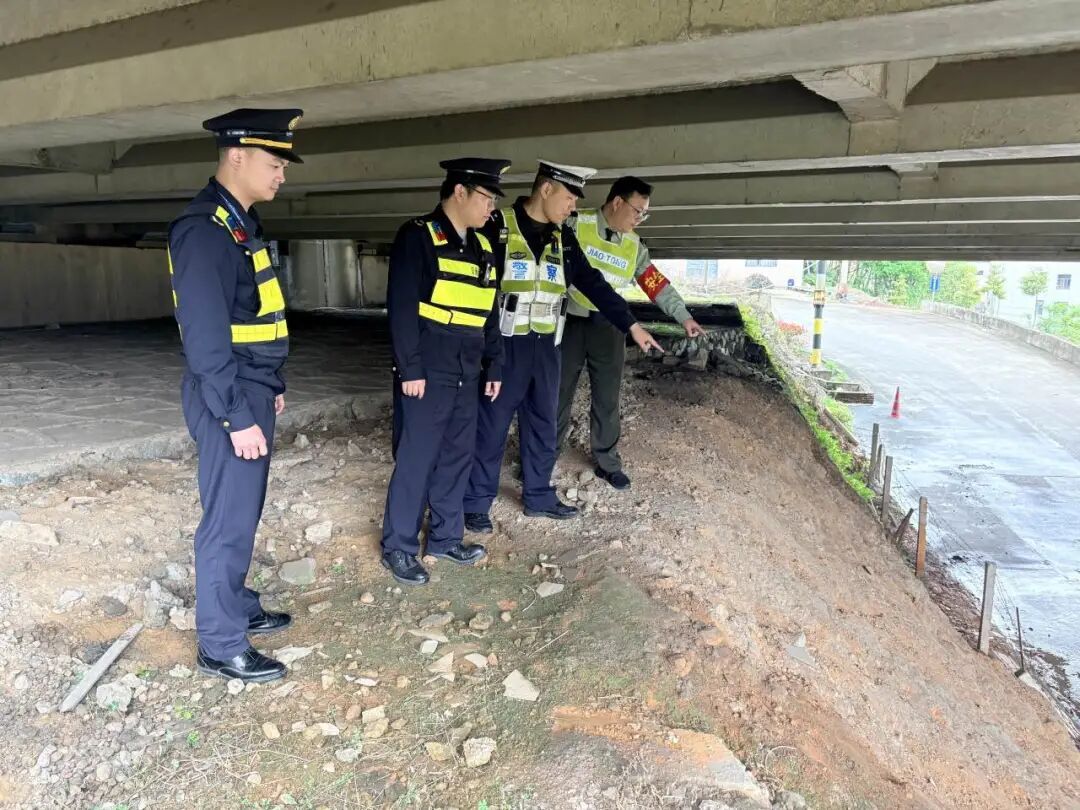 检查小组采取“徒步巡查+车辆巡查”相结合的方式,对高速公路上边坡路段、桥梁、涵洞、湛卢服务区等关键节点逐一排查,聚焦边沟排水畅通性、高护坡稳定性、桥梁结构安全性、涵洞隐患排查等核心环节,做到不留死角、不漏一处。针对巡查中发现的个别隔离栅破损、护栏缺损等问题,现场立即进行整改,切实将安全隐患消除在萌芽状态。同时,小组成员还向过往司乘人员普及清明节雨季行车安全常识,提示雨天路面湿滑、山区路段易发生滑坡等风险,引导司乘人员减速慢行、谨慎驾驶,合理规划出行路线。