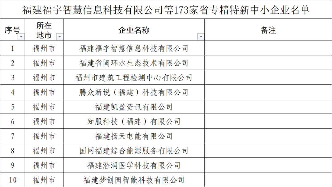 近日 福建省工业和信息化厅公布 专精特新中小企业名单 173家企业入选 一起来看——